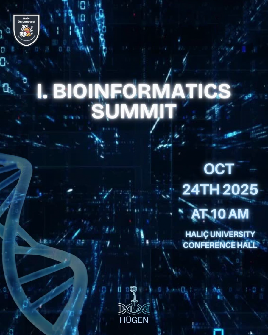 Haliç Üniversitesi Genetik Topluluğu (HÜGEN) tarafından 24 Ekim 2025 tarihinde düzenlenecek olan "I. Bioinformatics Summit" etkinliği; çeşitli üniversitelerden Genetik, Veri Bilimi ve Biyoteknoloji alanlarında öncü akademisyenlerin katılımıyla gerçekleştirilecektir.