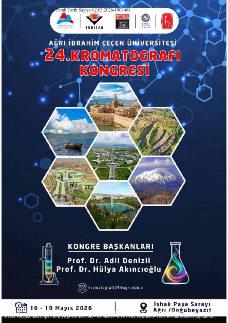 Ağrı İbrahim Çeçen Üniversitesi ev sahipliğinde 16–19 Mayıs 2026 tarihleri arasında Ağrı İli ve Doğubayazıt İlçesi İshak Paşa Sarayı'nda “24. Kromatografi Kongresi” düzenlenecektir.