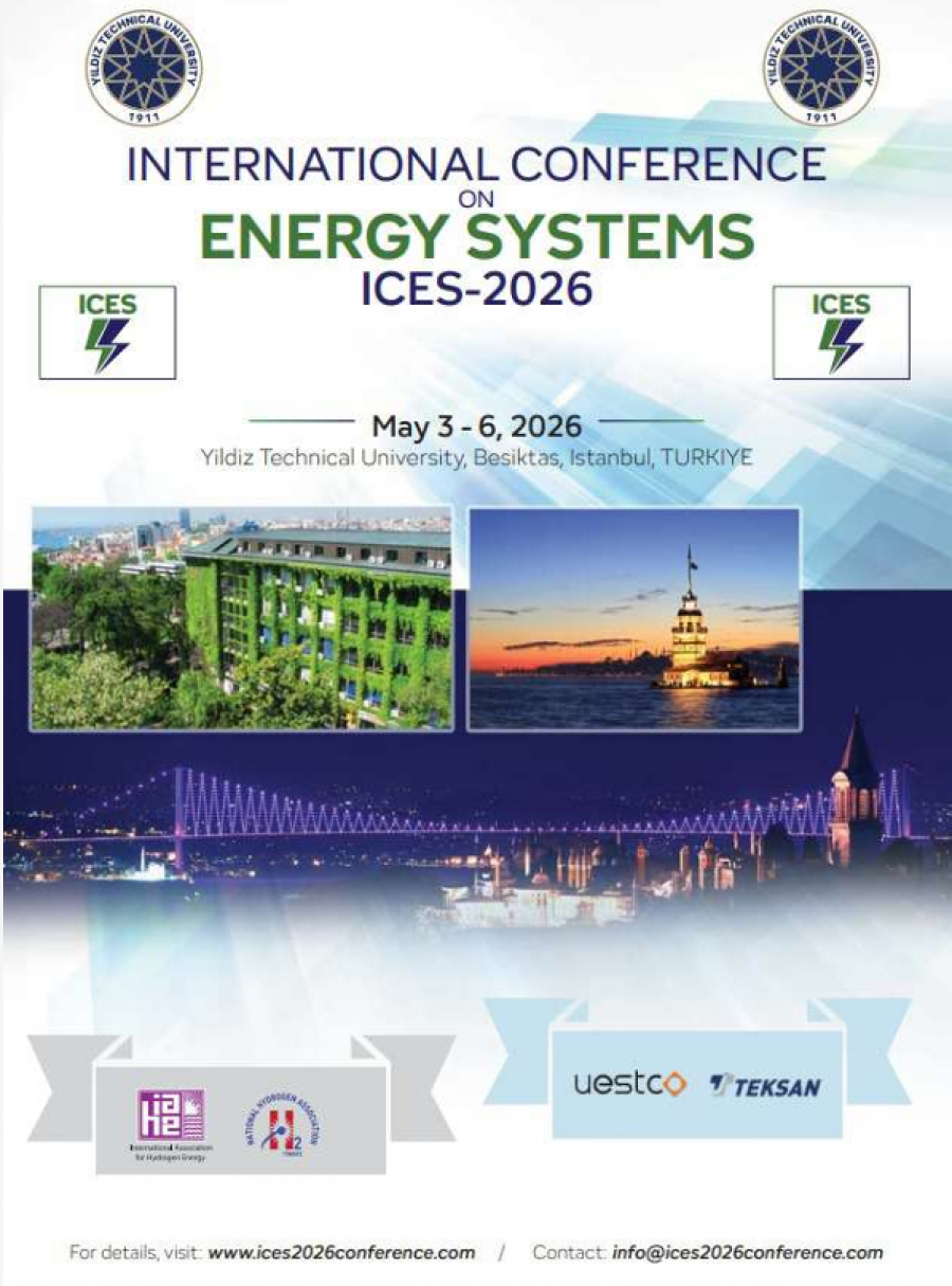 Yıldız Teknik Üniversitesi Yıldız Kampüsü'nde, 3–6 Mayıs 2026 tarihleri arasında, “ICES 2026 Konferansı” düzenlenecektir. Konferans kapsamında, enerji alanındaki güncel gelişmeler ele alınacaktır.