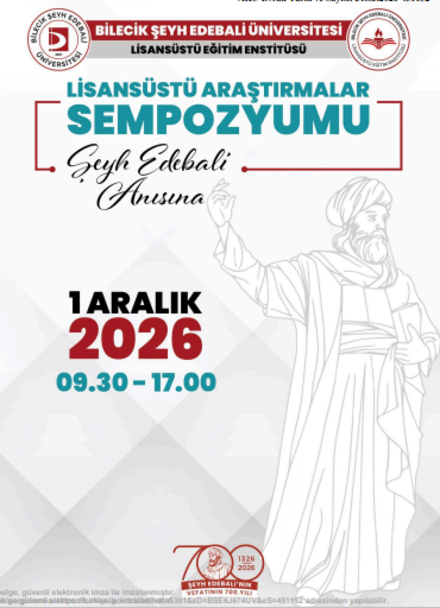 Bilecik Şeyh Edebali Üniversitesi ev sahipliğinde 01 Aralık 2026 Salı günü “Lisansüstü Araştırmalar Sempozyumu” düzenlenmesi planlanmaktadır.