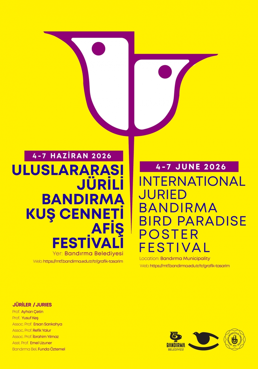 Bandırma Onyedi Eylül Üniversitesi ve Bandırma Belediyesi iş birliğiyle, 4–7 Haziran 2026 tarihleri arasında Bandırma Cumhuriyet Meydanı’nda “Uluslararası Jürili Bandırma Kuş Cenneti Afiş Festivali” düzenlenecektir.